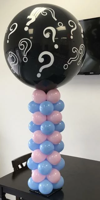 - Either blue or pink 5″ balloons and confetti inside the 3′ balloon