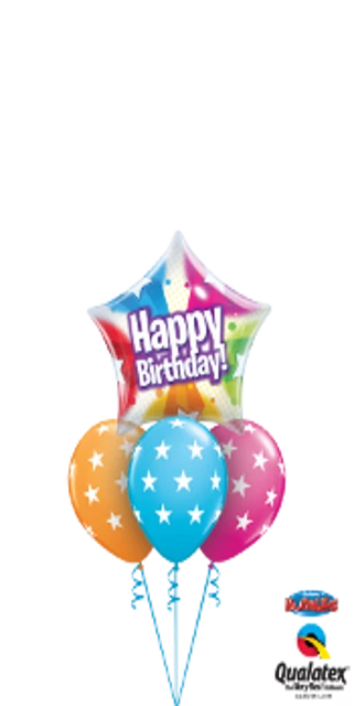 Be the star on your birthday with this colorful bouquet featuring the âBirthday Stars & Dot Patternsâ Bubble Balloon!
