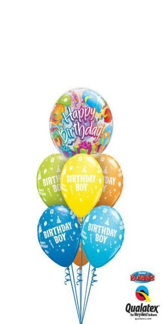 It’s your birthday, birthday boy! Celebrate with this bouquet with a “Birthday Surprise” Bubble on top.