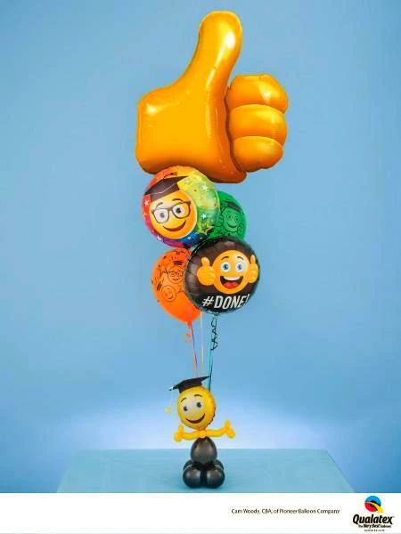 Give any grad a huge thumbs up with this striking bouquet featuring the new “Thumbs Up” and “Smiley Graduate” foils!