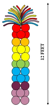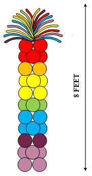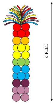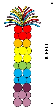 This is a standard 6′ Balloon Column, With the colors of the rainbow, and fireworks shooting from the top.