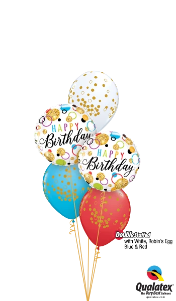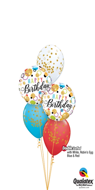 Bring this bouquet accented with colorful dots and glitter to make someone’s birthday shiny and bright!