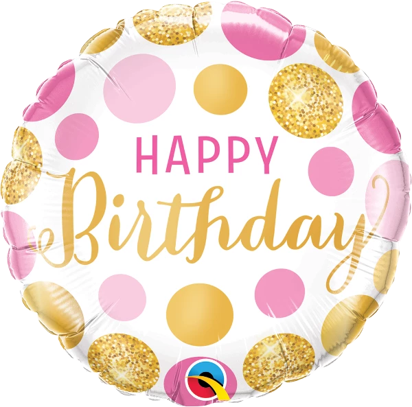 Bright and Bold Happy Birthday Gold and Pink Big Dots balloon.