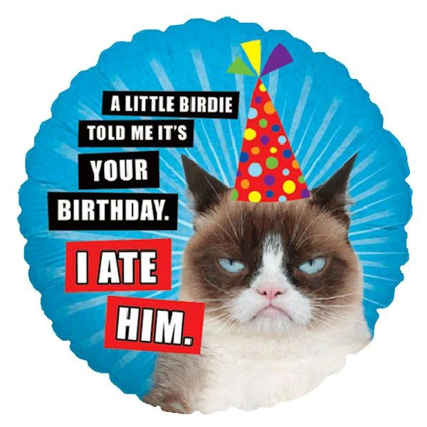 Add this hilarious Grumpy Cat “A little birdie told me it’s your birthday. I ATE HIM” to your next bouquet!