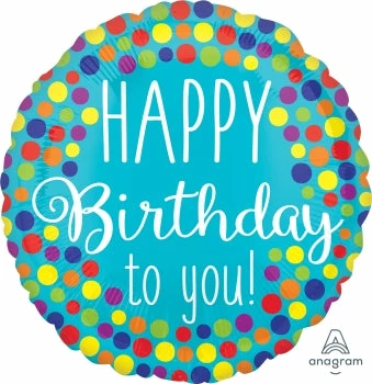 Add this colorful happy birthday polka dot balloon to your next bouquet!