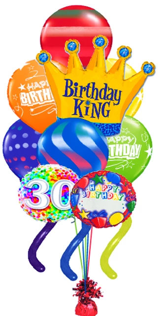 When you want to impress, this bouquet does the job. It includes an assortment of Jumbo 16in printed balloons with whimsical twisty balloon accents, and balloons personalized with the recipient’s name and age.