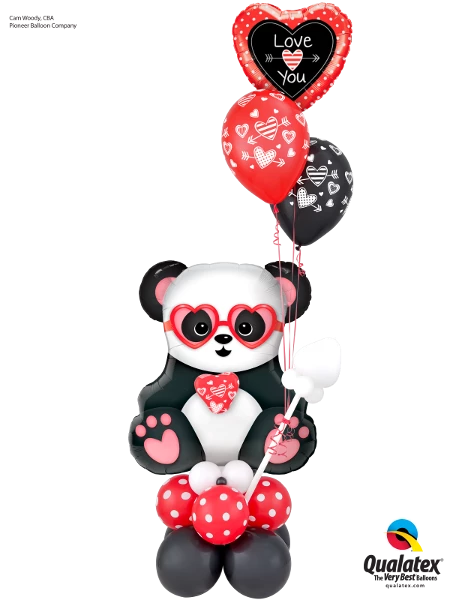 This un-BEAR-ably adorable design has this cute panda bear holding a scepter made with White Qualatex balloons.