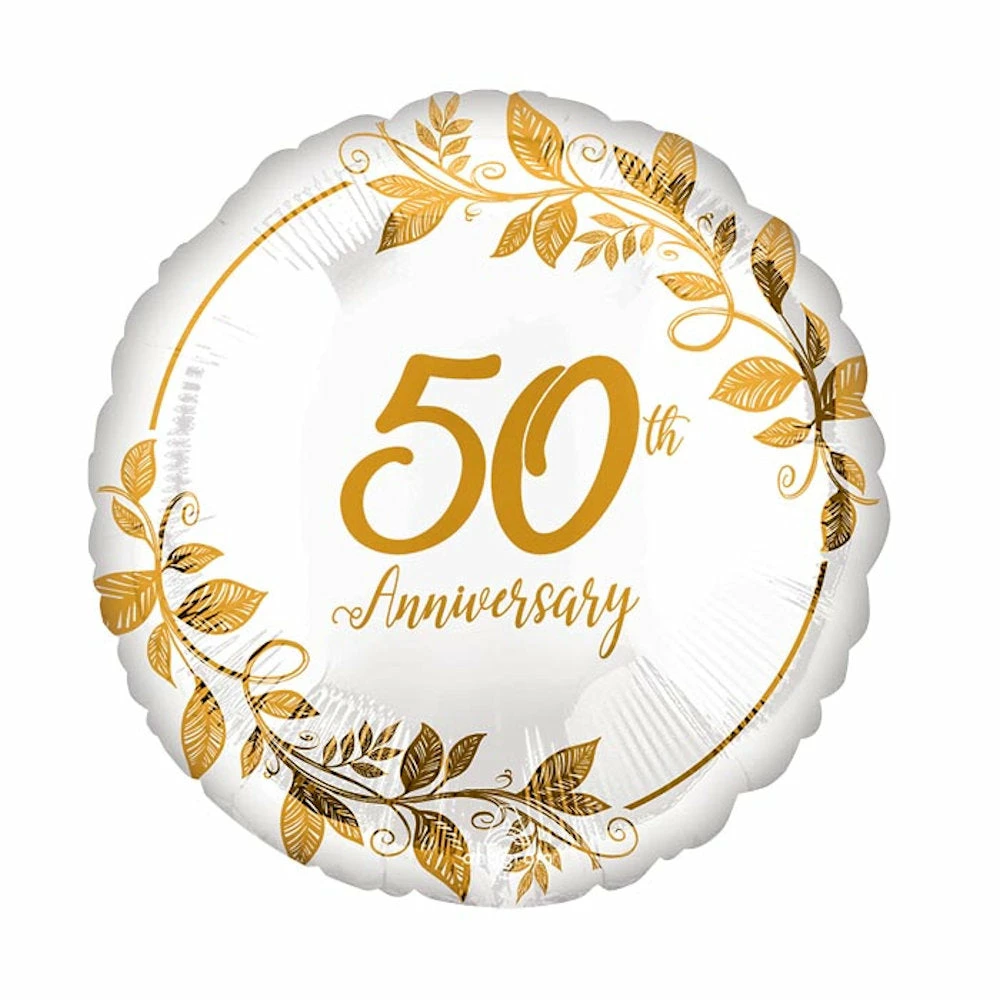 This beautiful 50th Anniversary balloon is white with a stunning floral print.