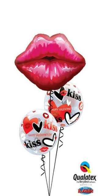Celebrate Valentine’s Day with a big kiss, starting with this bouquet featuring the “Big Red Kissey Lips” foil Shape.