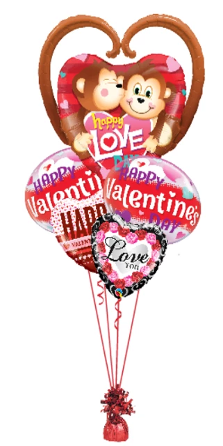 The Jumbo Kissing Monkeys balloon uses the monkeys’ tails to create a unique heart-shaped halo. The message is loud and clear — Happy Love Day! LOVE YOU hearts can be added from the add-on menu below.