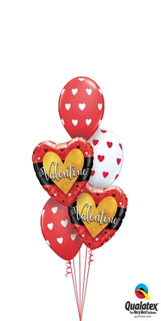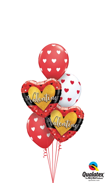 Your Valentine is priceless! Show your love with this elegant bouquet featuring the “Valentine Burnished Heart Gold” foil!