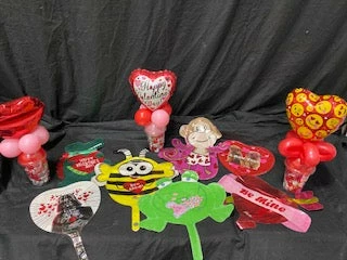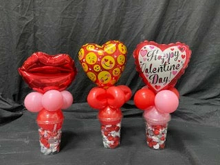 A Valentine balloon and a cup of candy kisses!! Please look at the pictures of balloons and add which you want in the notes section of your order.
