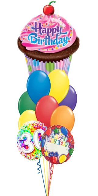 Make it a Birthday Cupcake highlighted with your selected colors and personalized balloons with birthday age and name.