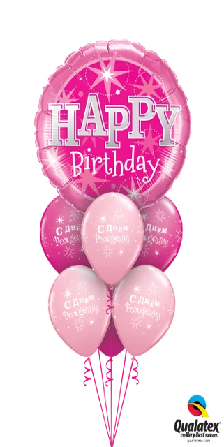 Double birthday fun with this bouquet featuring a “Birthday Pink Sparkle” foil and Rose/Pink latex balloons!