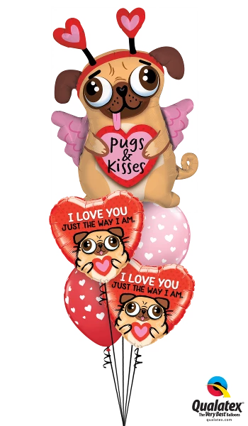 This adorable Pug bouquet will appeal to your love of any age. The Pug Balloon is really adorable. Don’t forget to add a 1/2 pound of Candy Kisses.