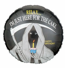Add this Grim Reaper “Relax..I’m just here for the cake” balloon to your next bouquet! It will be sure to bring some laughs!