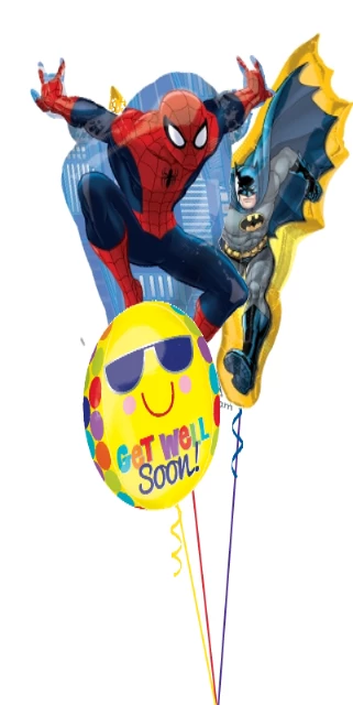 A Hospital Approved get well soon message delivered by Spidey & Bat-man