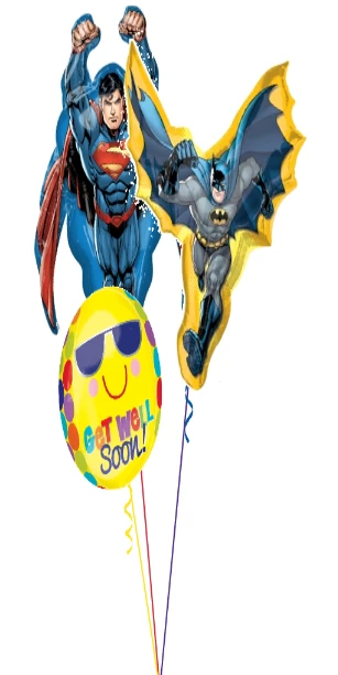A Hospital Approved get well soon message delivered by Superman & Bat-man